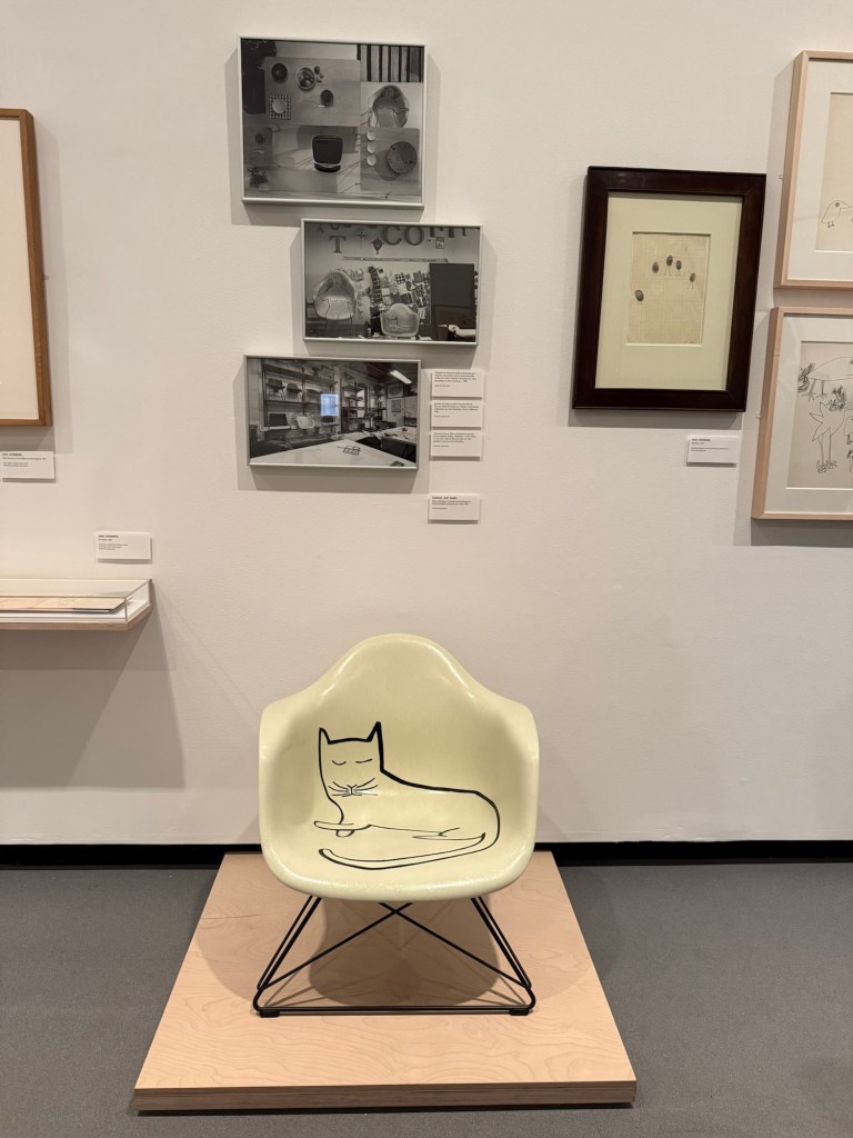 También había arte con esculturas y objetos en 3D. Me llamó la atención este de la silla con el gato dibujado. Convierte algo funcional en una obra de arte, con un toque absurdo. Esto se ve mucho en sus obras.