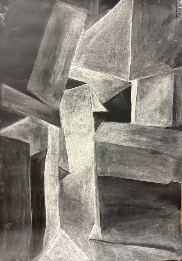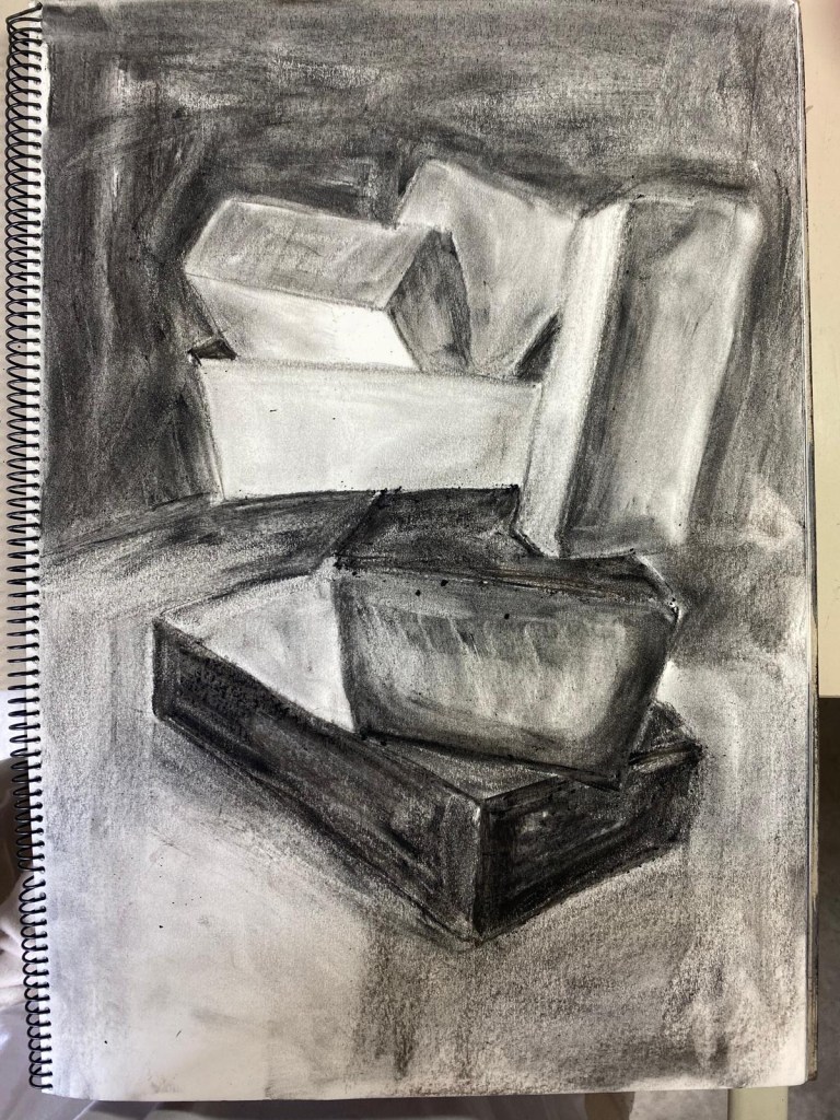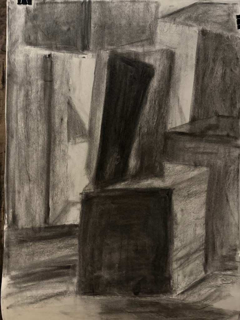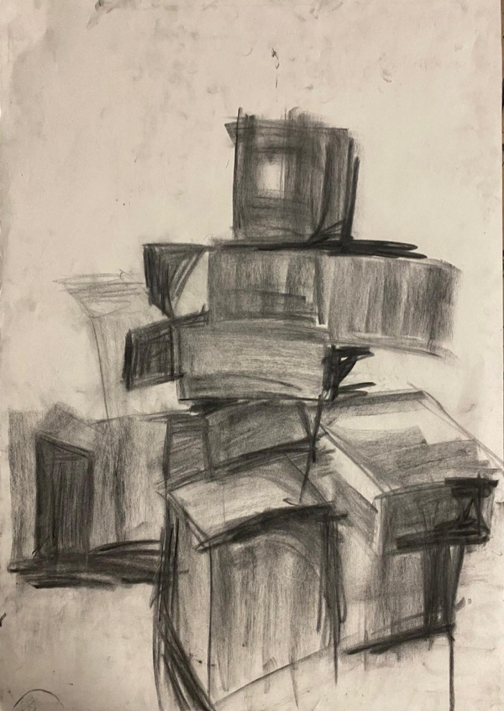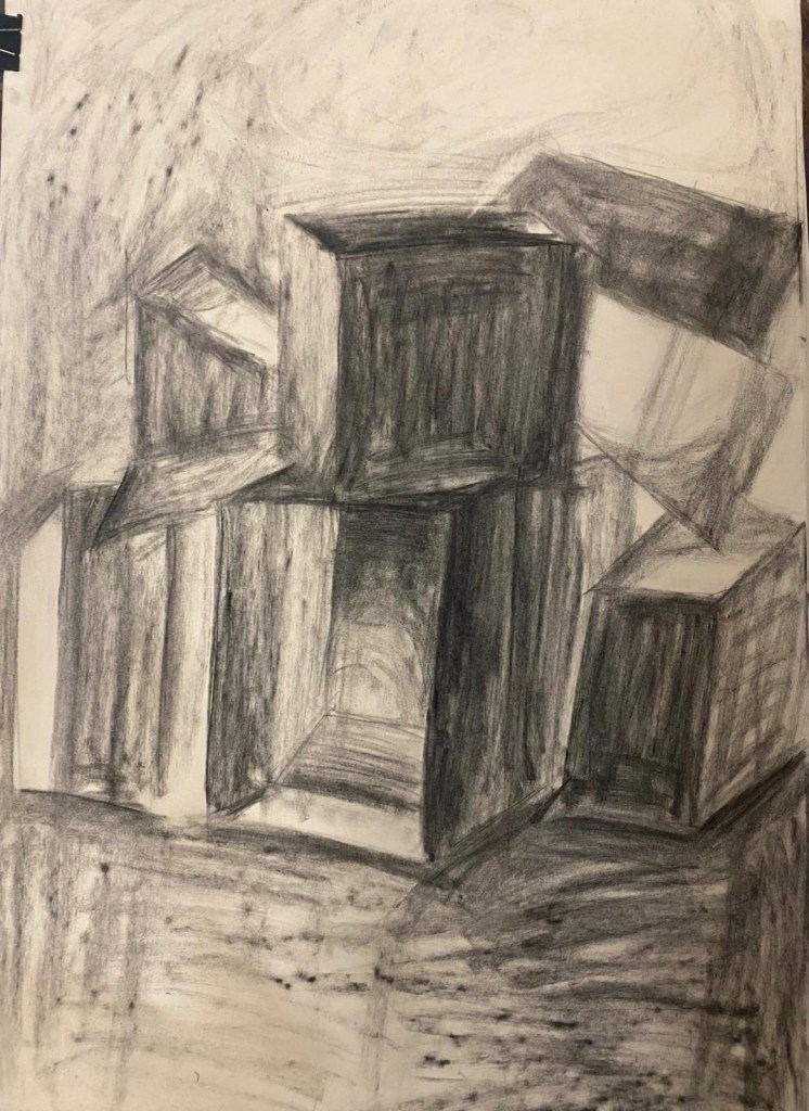 Pues eso es lo que hemos estado haciendo durante… ¿Días? ¿Semanas? He perdido la cuenta. El caso es que llevamos mucho tiempo haciendo lo mismo: dibujar los espacios que se generan entre las cajas. Y confieso que al principio no entendía muy bien por qué. Pero lo he entendido, vaya que si lo he entendido.