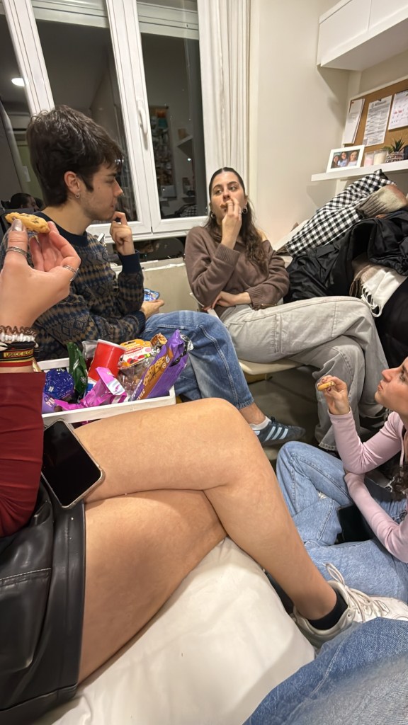 Nos fuimos los 5 a mi residencia, donde dejamos las 5 carpetas y pasamos las horas charlando y comiendo chuches (necesitaba ayuda para terminarme mi cajón de los antojos antes de irme a casa por Navidad).