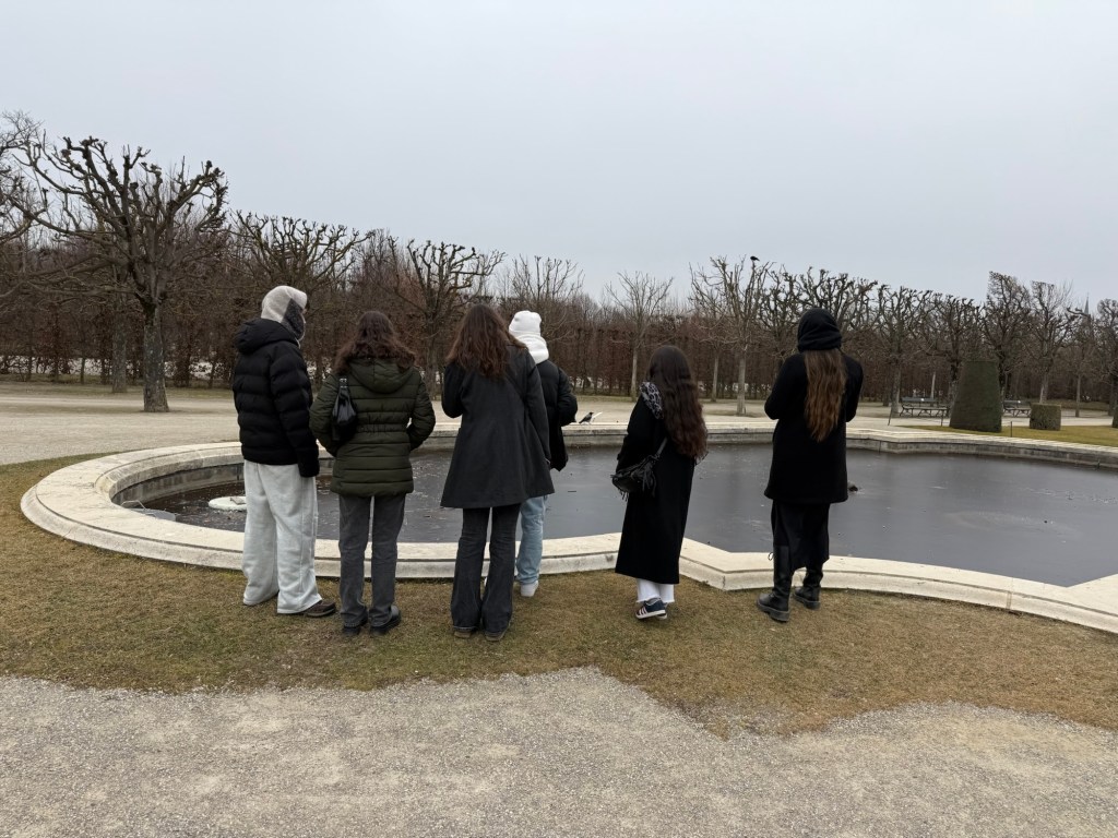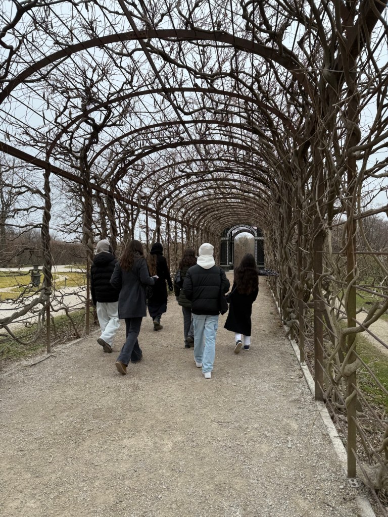 El caso es que llegamos al Palacio de Schönbrunn, fuera como fuese. Era precioso, y nos recorrimos sus jardines. Nos parecieron una pasada, y eso que al ser invierno no había casi hojas. Me imagino cómo será eso en primavera. Vimos una ardilla monísima que corría como el demonio, y subimos una montaña importante para admirar las vistas del palacio desde arriba (casi pierdo los dedos de los pies del frío que hacía allí arriba, y las enfermas pudieron haber muerto ahogadas, pero todo sea por la foto).