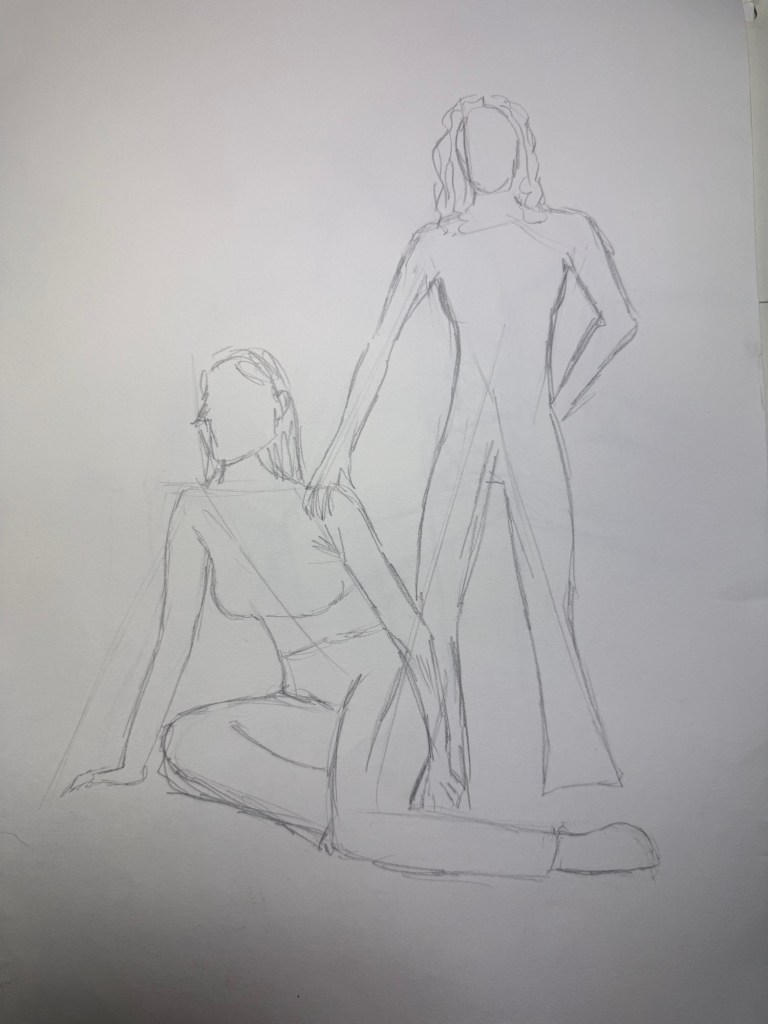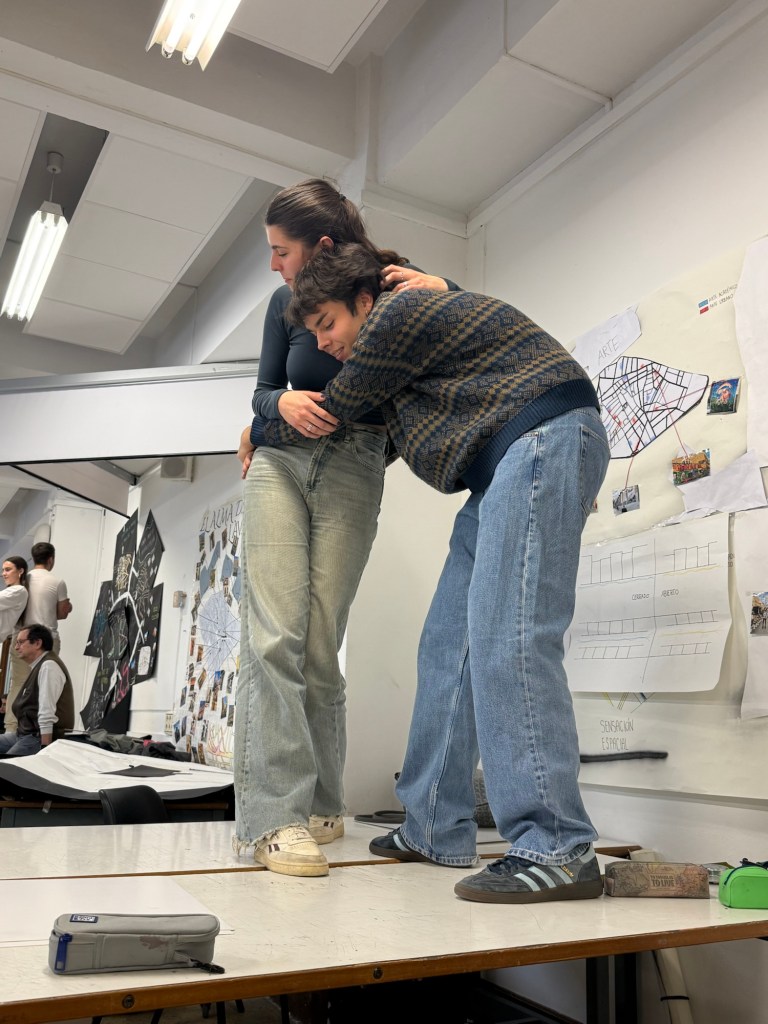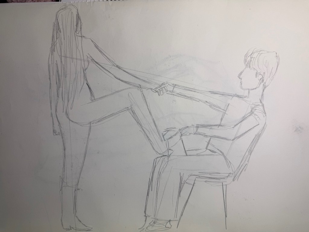 Efectivamente, nos tocó hacer de modelos. Idear posturas diferentes y buscar el mejor ángulo desde el cual dibujarlas (aunque nos echaran la bronca por no movernos lo suficiente). Cuánto más avanzábamos, más extrañas eran las poses.