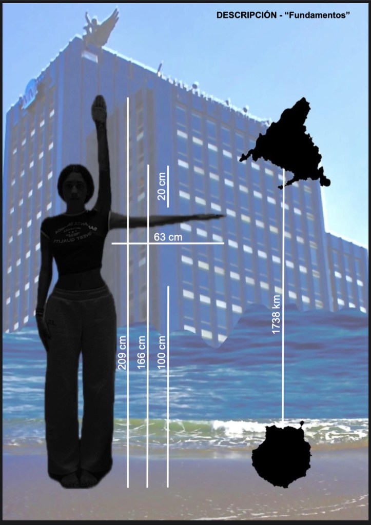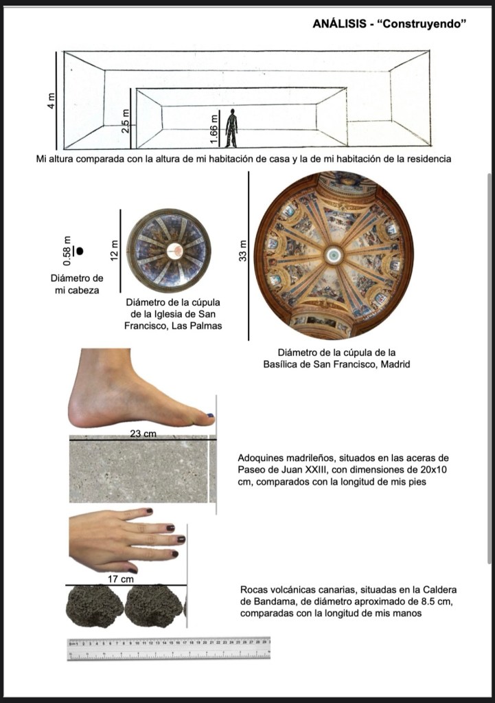 Puse mis medidas y me comparé con cosas de Gran Canaria/Madrid, y al final hice la interpretación de que soy los lugares que me han marcado, añadiendo andamios que simbolizan que sigo en desarrollo.
