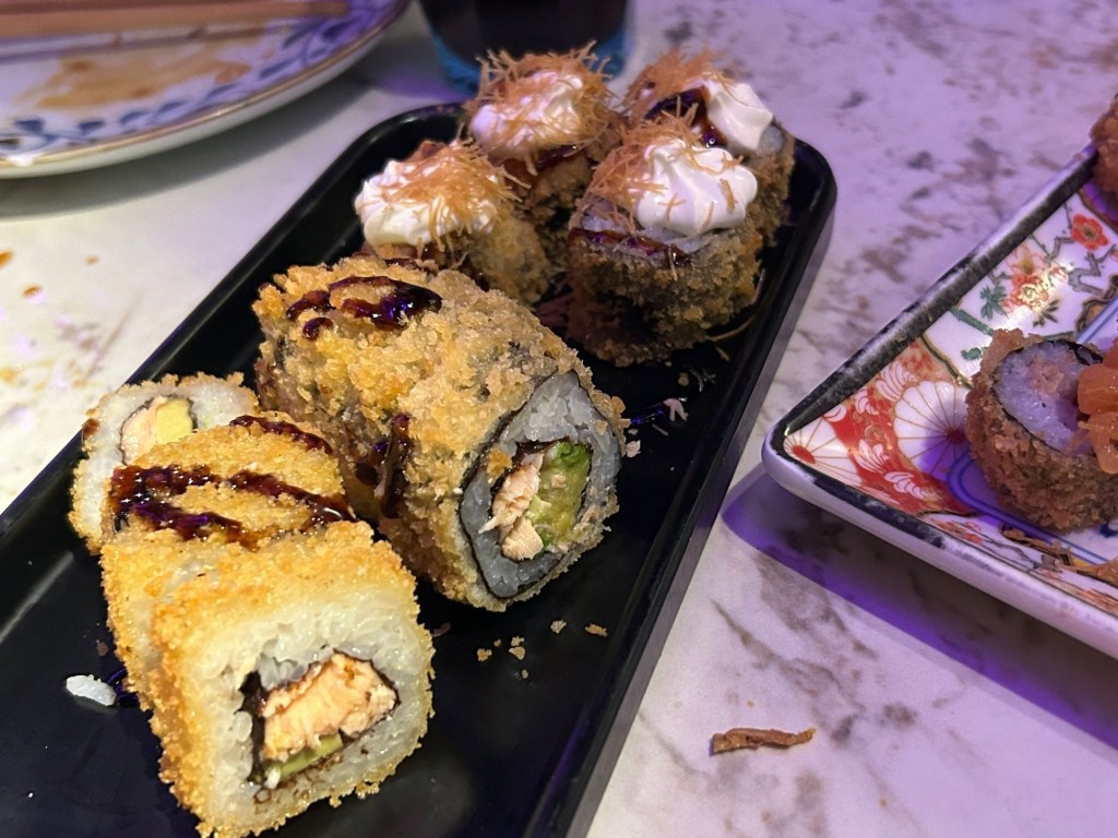 A la mañana siguiente nos pusimos guapos porque teníamos comida de macro unión: padres + kinkis, comiendo… ¡¡¡sushi!!!