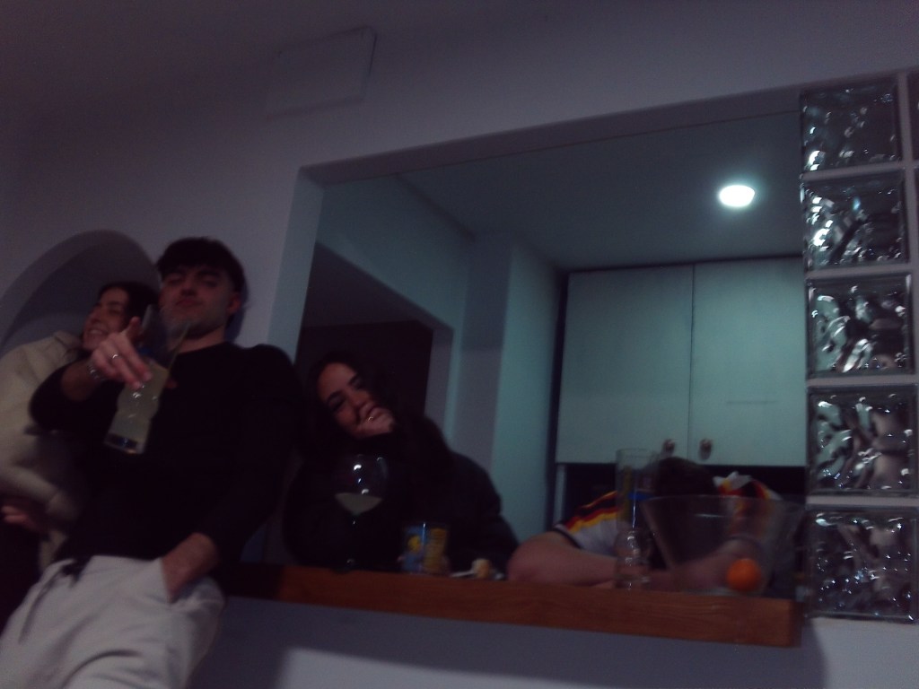 A la mañana siguiente desayunamos tortitas celíacas, y al rato partí de nuevo hacia el Indi piso. Llegué y me encontré a Clau, Paula y… SAMUEL. Todos ahí de okupas, porque Indi tenía comida en el pueblo. Así que ahí estuvimos un rato charlando, y luego Samuel se fue mirándonos como un cachorro triste. Hubo que decirle que nos había caído bien.