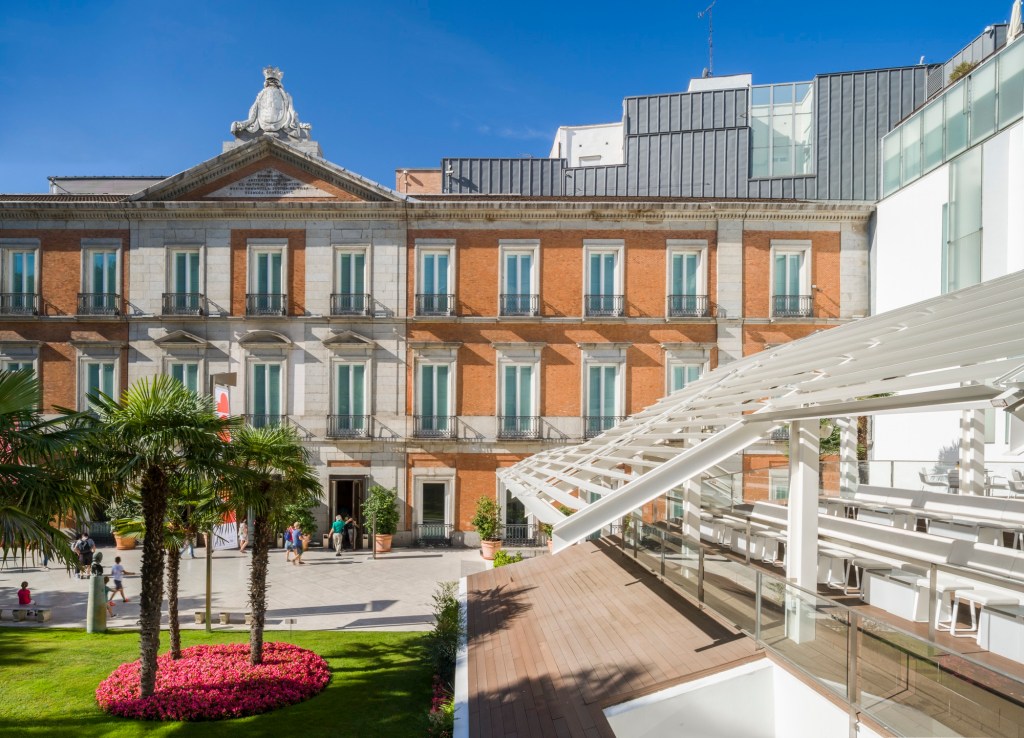 Por otro lado tenemos el Museo Thyssen, que tampoco conozco (es que llevo muy poco en Madrid!!!), y del que tampoco supimos nombrar a sus dos arquitectos. Este edificio se encuentra en el Palacio de Villahermosa, original del siglo XVIII. La familia Villahermosa le encargó el edificio al arquitecto Antonio López Aguado. Fue reformado en 1992 por el arquitecto Rafael Moneo para adaptarlo a su función actual de museo. No amplió la estructura original, solo alteró los espacios interiores, creando el actual Museo Thyssen-Bornemisza.
