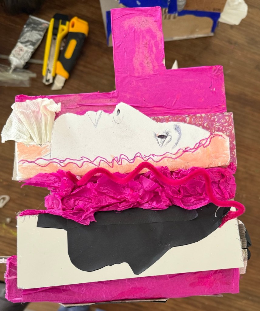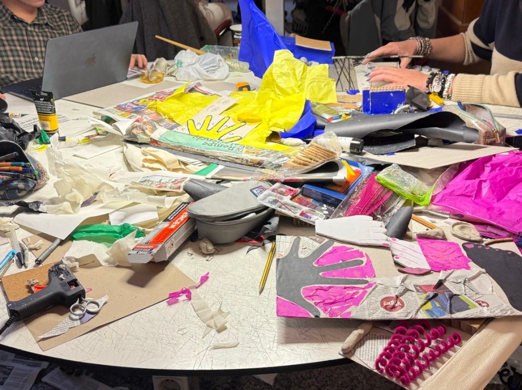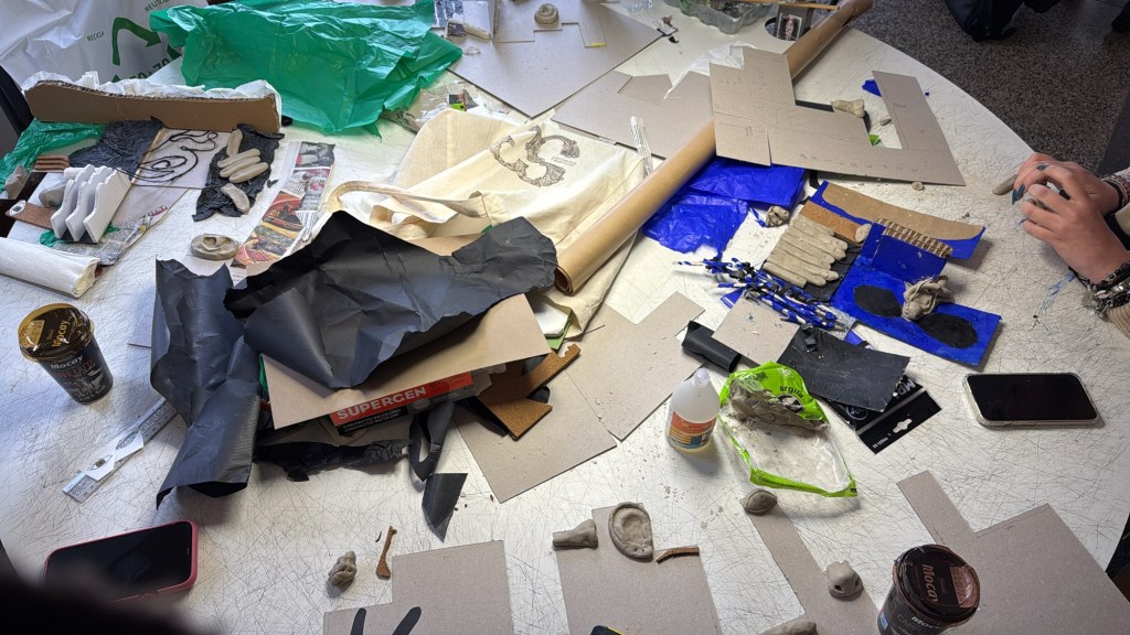 Total, que fue una mañana intensa de hacer orejas y narices de arcilla y de explotar nuestras visiones artísticas. Dejamos la mesa más guarra que nunca.