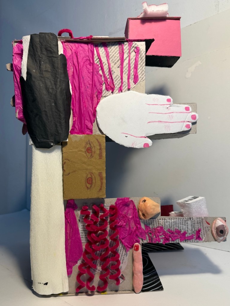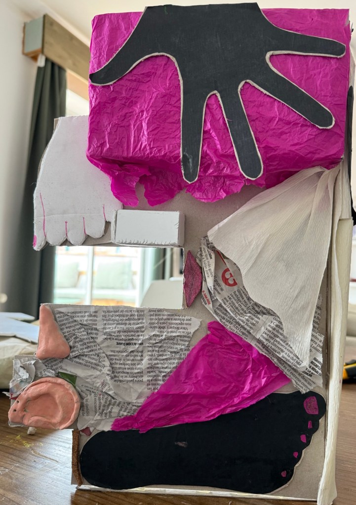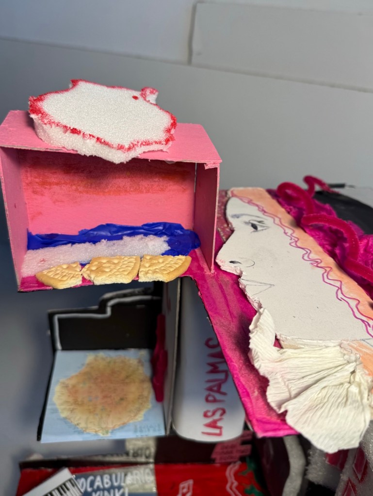 A la mañana siguiente al fin vimos nuestro resultado terminado y… bueno. Es mejorable. Lo sabemos. Álvaro y Enrique nos dijeron que deberíamos agregar un interior con chicha, que contara más sobre nosotros. Y además, como suponíamos, nos dijeron que era demasiado cúbico, demasiado igual en las cuatro partes. Y que nosotros no somos iguales.