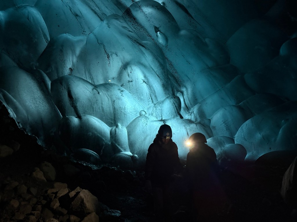 El último día visitamos la cueva de hielo más grande que han encontrado jamás. Resulta que un trozo de glaciar se deslizó por la montaña y luego la propia montaña cubrió el hielo, conservando esta pedazo de cueva durante años. Peeeero ahora que se ha abierto al exterior (la encontraron el pasado noviembre) está empezando a derretirse… Literalmente ESTE VERANO desaparecerá. WOW.