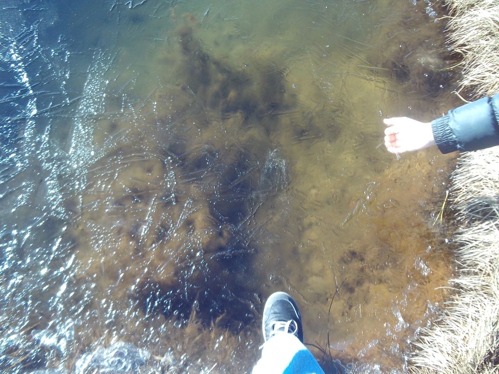 El agua estaba congelada en algunas partes, aunque no lo suficiente como para caminar sobre ella, por mucho que quisiéramos.