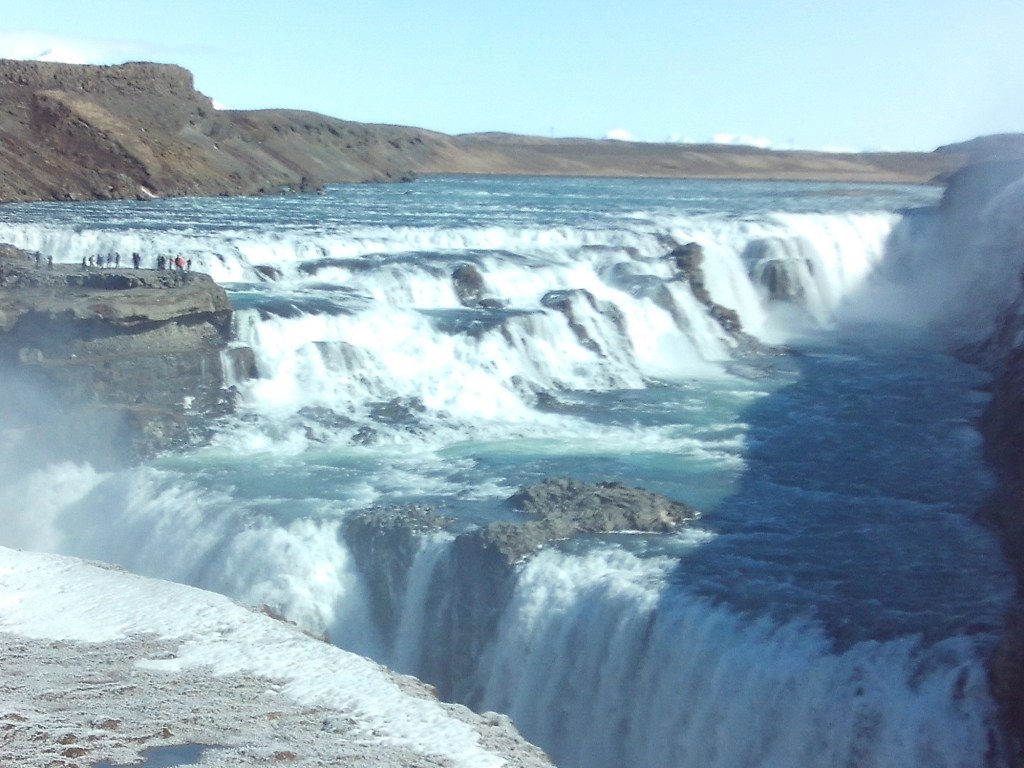 Vimos la loquísima catarata de oro, o Gullfoss. Por lo visto se llamaba así por una leyenda de que un granjero no quería que le robaran su oro al morir, así que lo tiró agua abajo. Aunque yo no vi oro, y eso que hice MUCHO zoom con el móvil.