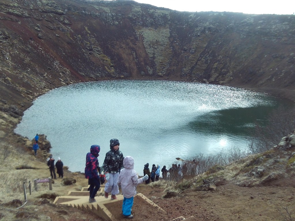 Luego estuvimos en el cráter de Kerid, que tenía dentro un lago enooorme y turquesa, y muchos pibes chiquititos se resbalaban ladera abajo, fue muy gracioso.