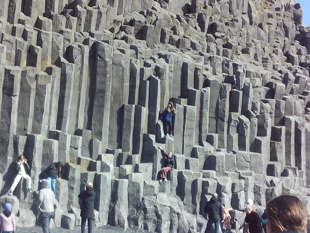 También estuvimos en la playa de arena negra, que tiene unas rocas ahí flotando enormes que según creen los islandeses son trolls que salieron de su cueva y se petrificaron al sol. Les molan las historietas estas raras a los tíos.