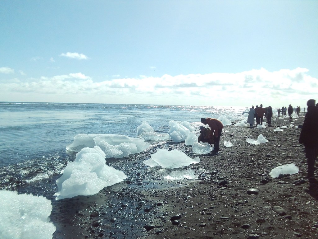 De ahí fuimos a la playa de diamantes, en la que vimos lo que mis queridas Taylor Swift y Lana del Rey describen en su canción “Snow on the beach”. Pues eso, bloques de hielo brillantes como diamantes en la orilla de la playa. Daban muchísima impresión.